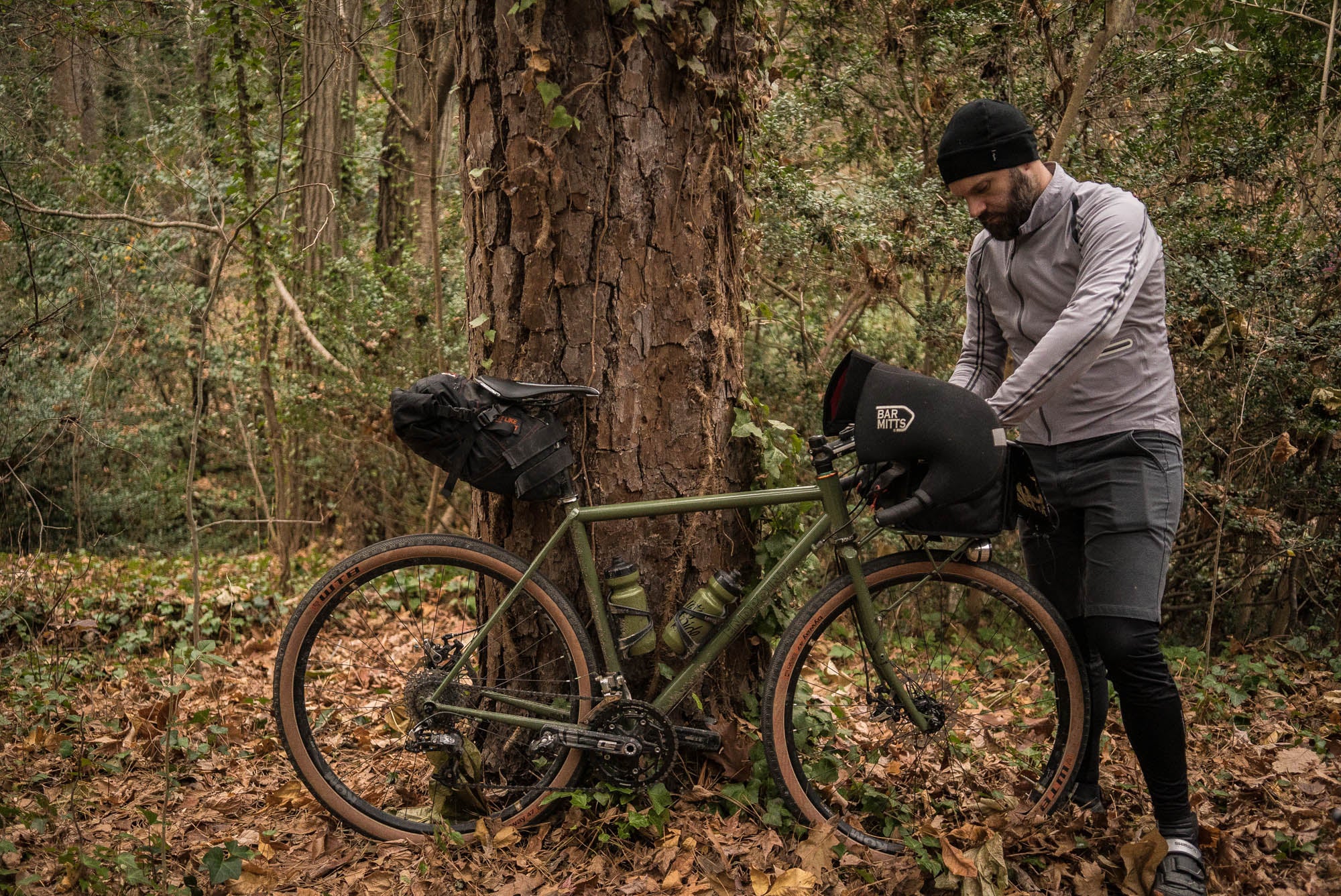 The Coffee Grinder is equipped with three bottle cages mounted low to free up enough space for a frame bag. Fender mounts keep you dry in any weather. Fenders are rated to clear a max tire size of ~700x32 or ~650x42.